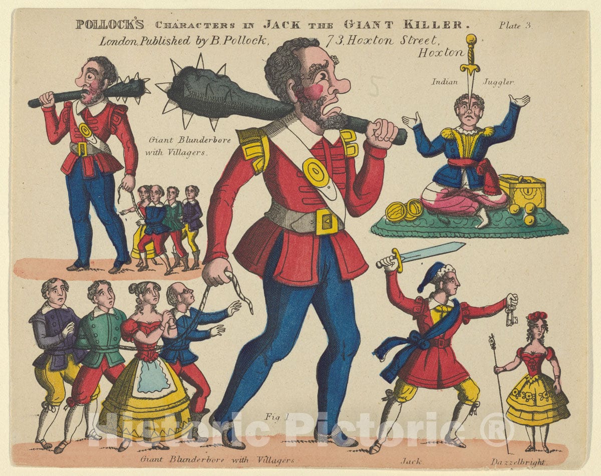 Art Print : Benjamin Pollock - Characters, from Jack and The Giant Killer, Plate 3 for a Toy Theater : Vintage Wall Art
