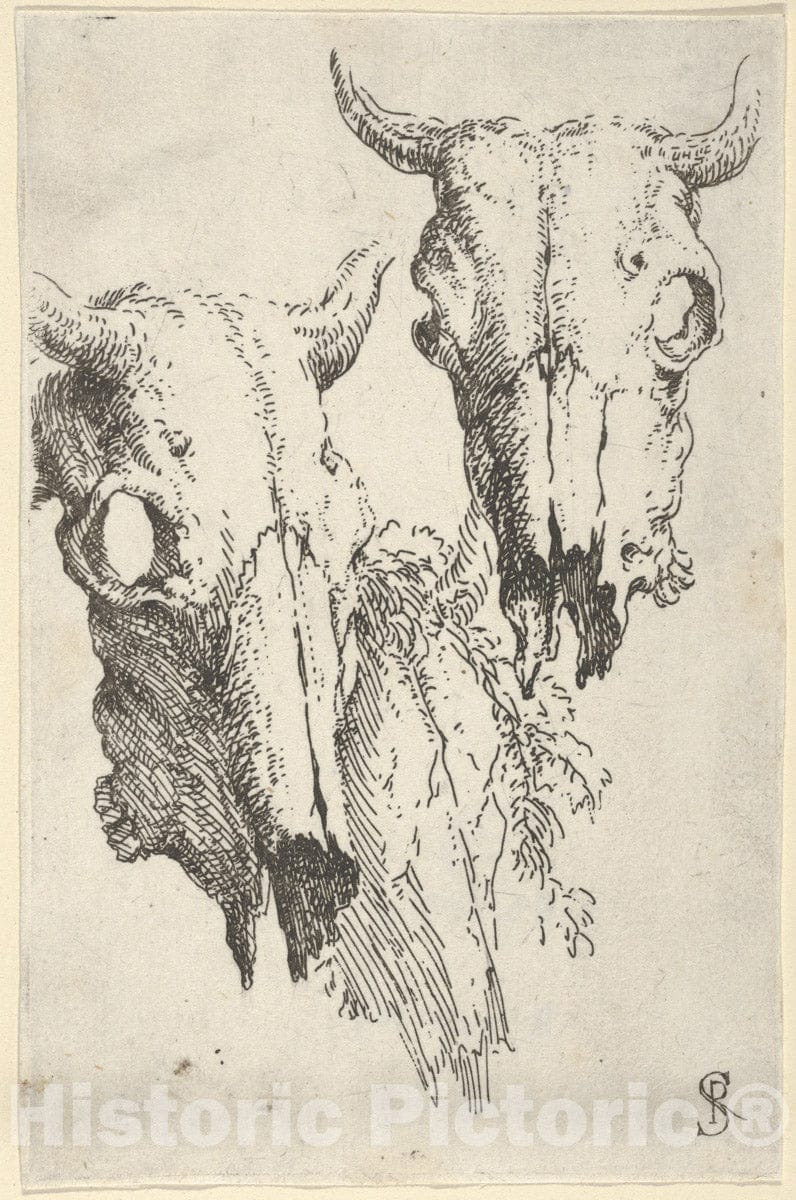 Two ox skulls and a portion of a third, study for "Democritus in Meditation" - Italian, Arenella (Naples) 1615–1673 Rome - Artist Nationality: Italian - Original Medium, Materials or Technique: Etching