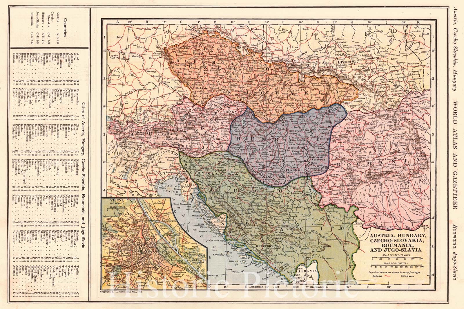 Historic Map : 1920 Austria, Hungary, Czecho-Slovakia, Romania and Jugo-Slavia : Vintage Wall Art