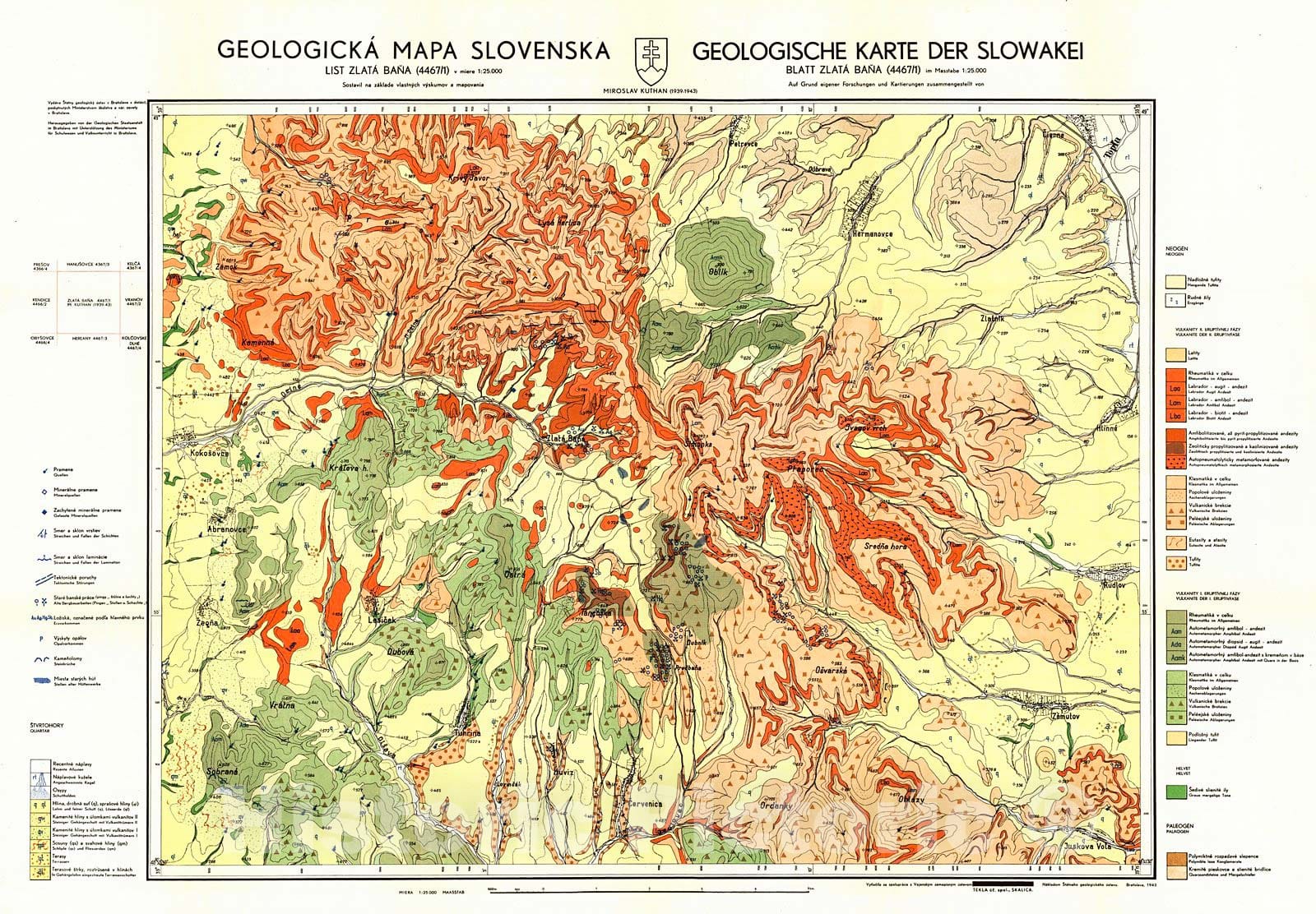 Historic Map : 1943 Geologická Mapa Slovenska, List Zlatá Bana (Geological Map of Slovakia, Zlatá Bana Sheet) : Vintage Wall Art