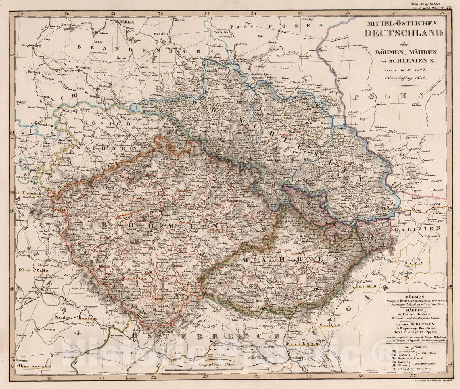 Historic Map : Germany; Czech Republic; Slovakia, 1834 Mittel-Ostliches Deutschland. (East Central Germany). , Vintage Wall Art