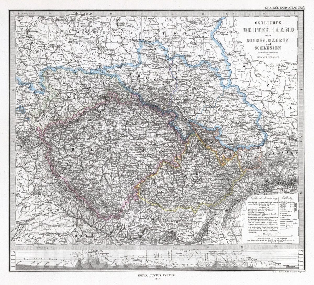 Historic Map : Germany; Czech Republic; Slovakia, 1873 Ostliches Deutschland oder Bohmen, Mahren, und Schlesien. (East Central Germany). , Vintage Wall Art