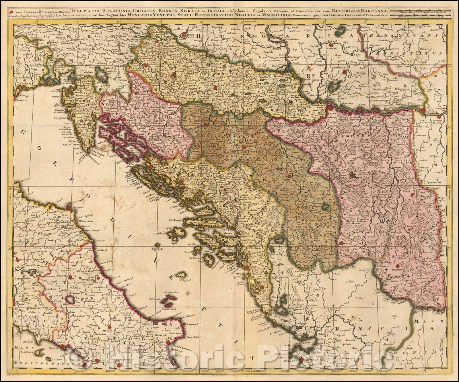 Historic Map - Dalmatia, Sclavonia, Croatia, Bosnia, Servia et Istria :: Countries along the Eastern Adriatic, from Istria to Macedonia and Slovenia, 1700 - Vintage Wall Art