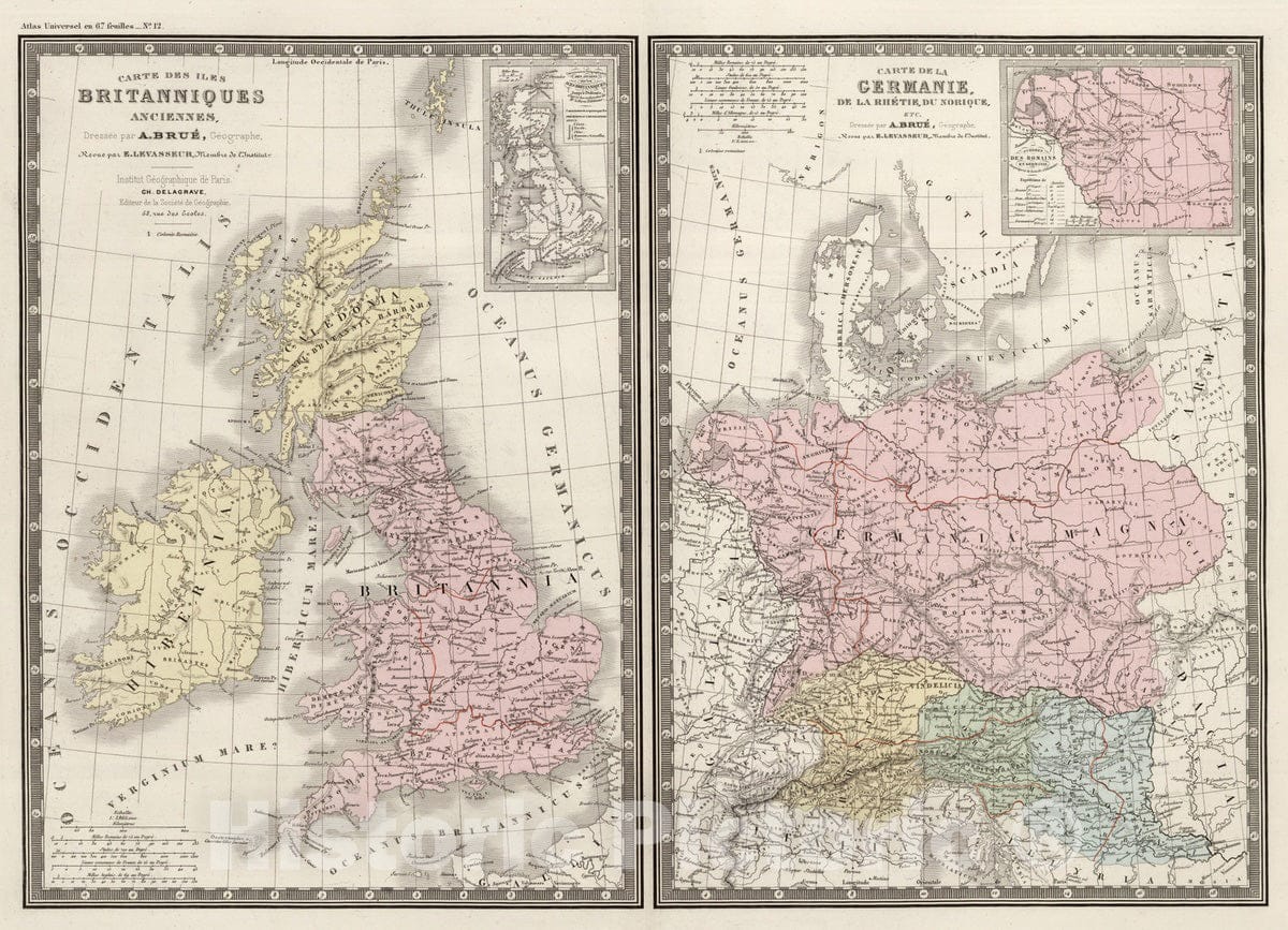 Historic Map : Great Britain; Germany; Poland; Slovenia, 1875 Iles Britanniques et Germanie Anciennes. , Vintage Wall Art