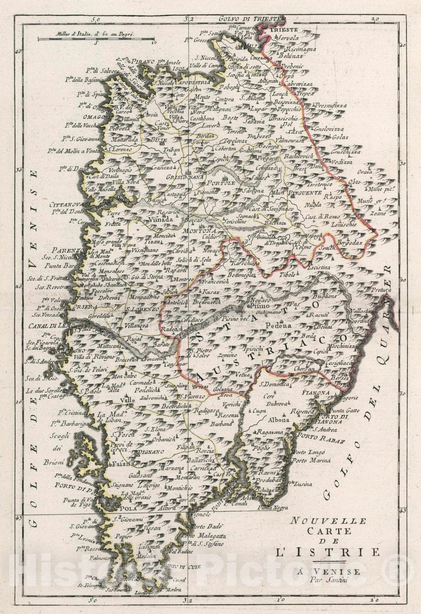 Historic Wall Map : Slovania, Istria (Croatia and Slovenia) Nouvelle Carte de l'Istrie. A' Venise Par P. Santini. , Vintage Wall Art