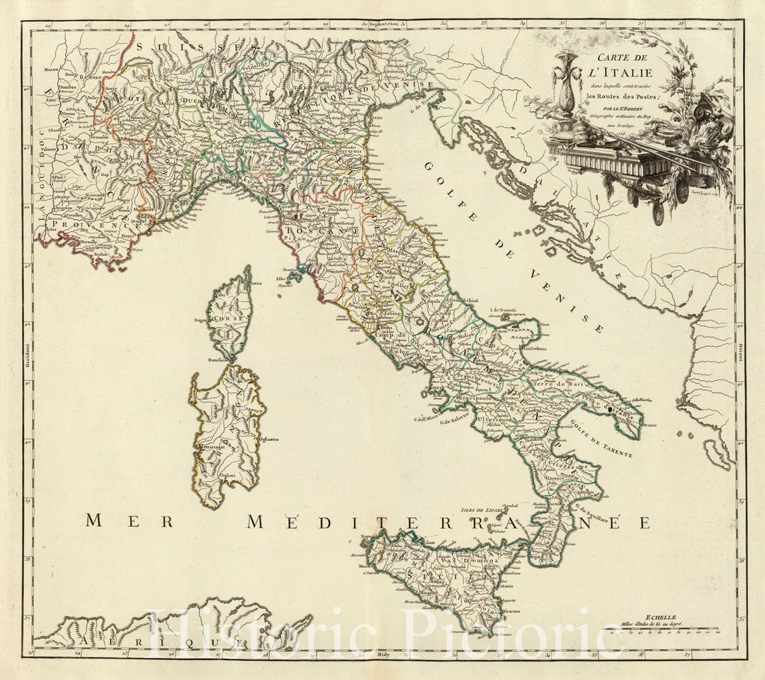 Historic Map : Italy; Slovenia, 1756 Italie postes. , Vintage Wall Art