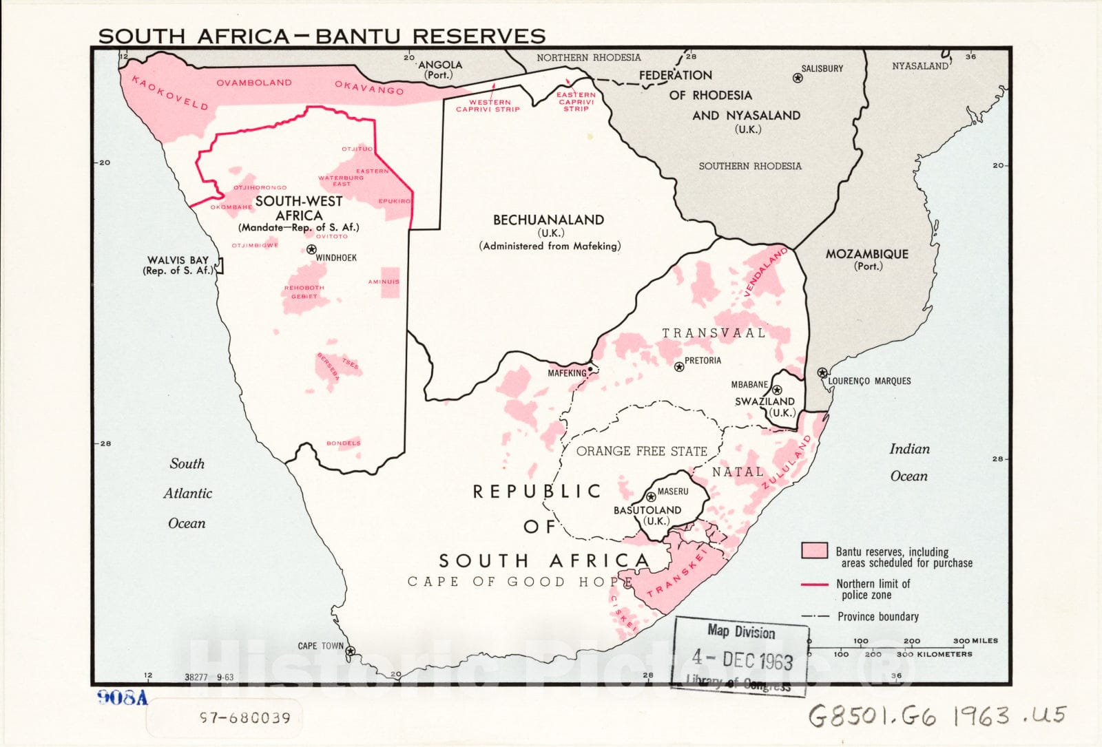 • Historic 1963 Map - South Africa, Bantu Reserves.