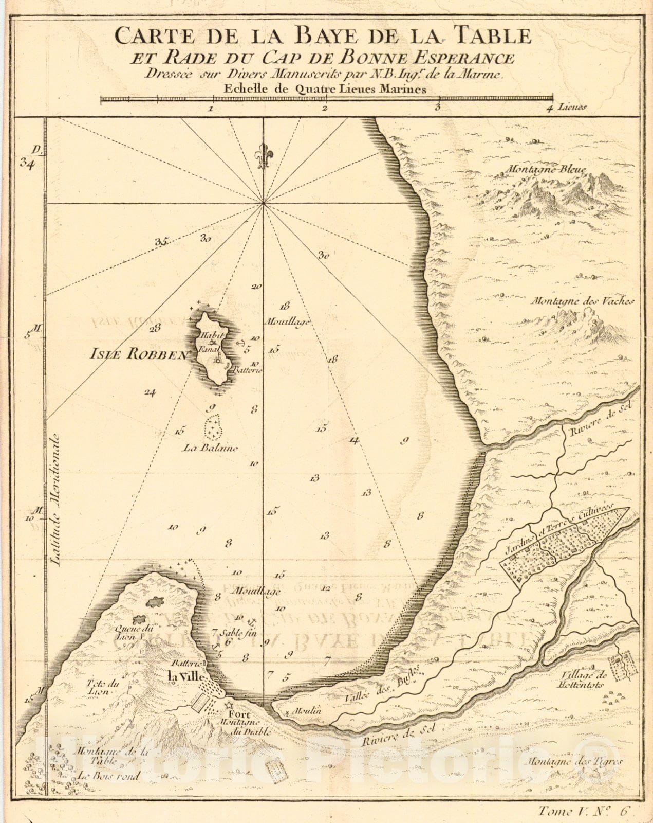 • .Historic Map : 1748 Carte De La Baye De La Table Et Rade Du Cap De Bonne Esperance (South Africa) : Vintage Wall Art