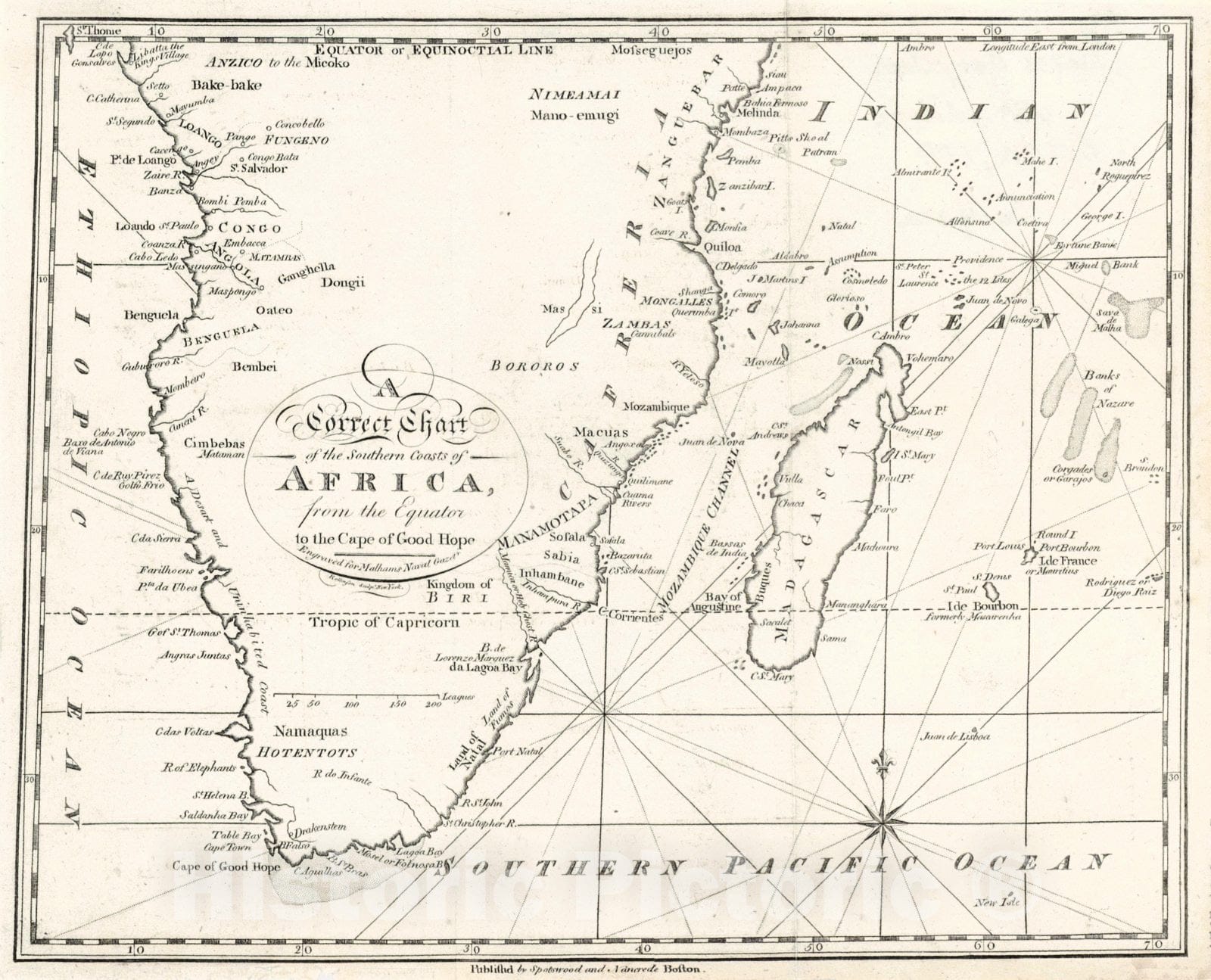 Historic Map : 1797 A Correct Chart of the Southern Coasts of Africa, from the Equator to the Cape of Good Hope : Vintage Wall Art