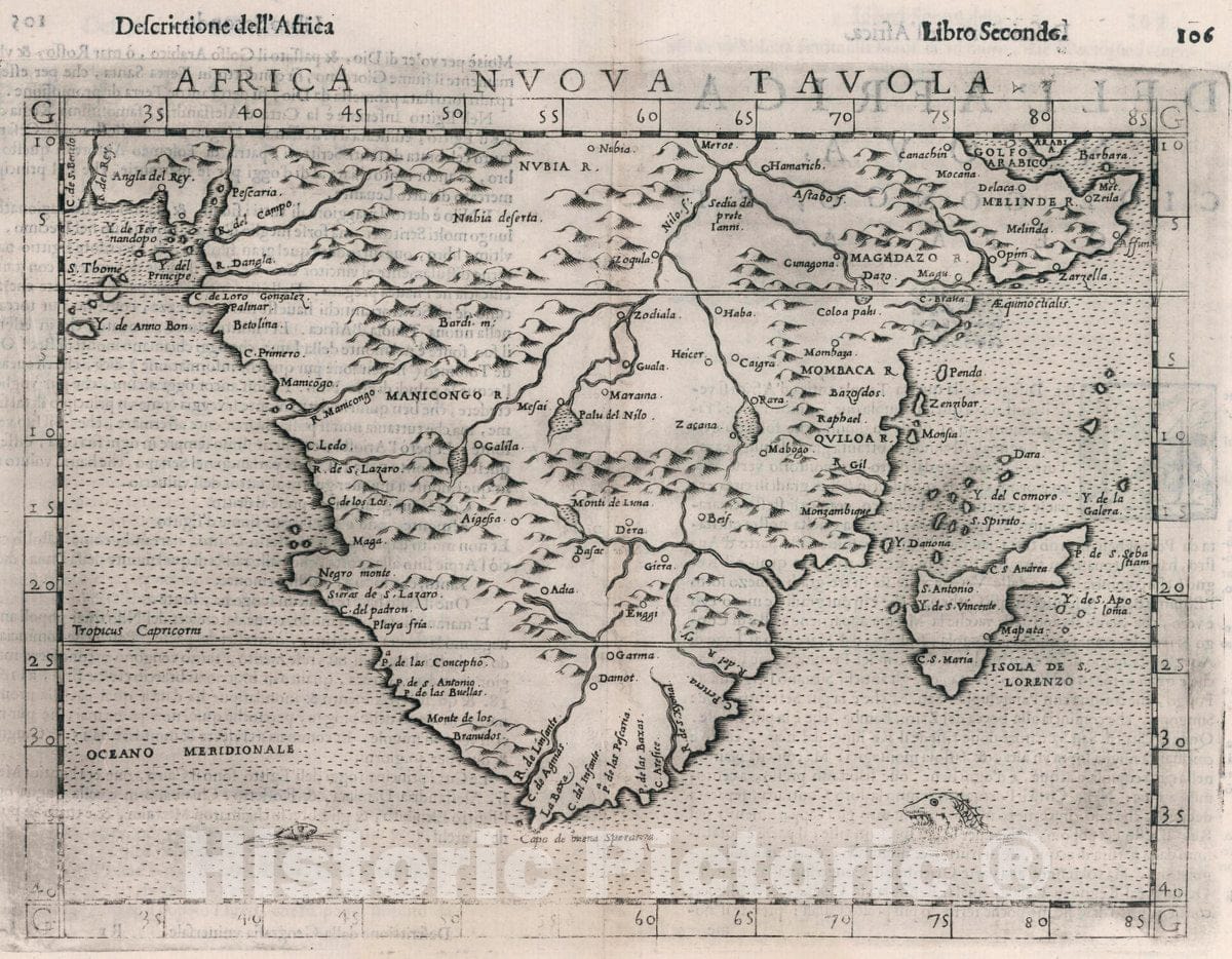 Historic Map : Africa, Southern Africa Nvova tavola. Descrittione dell' Africa. Libro Secondo, 1599 Atlas , Vintage Wall Art