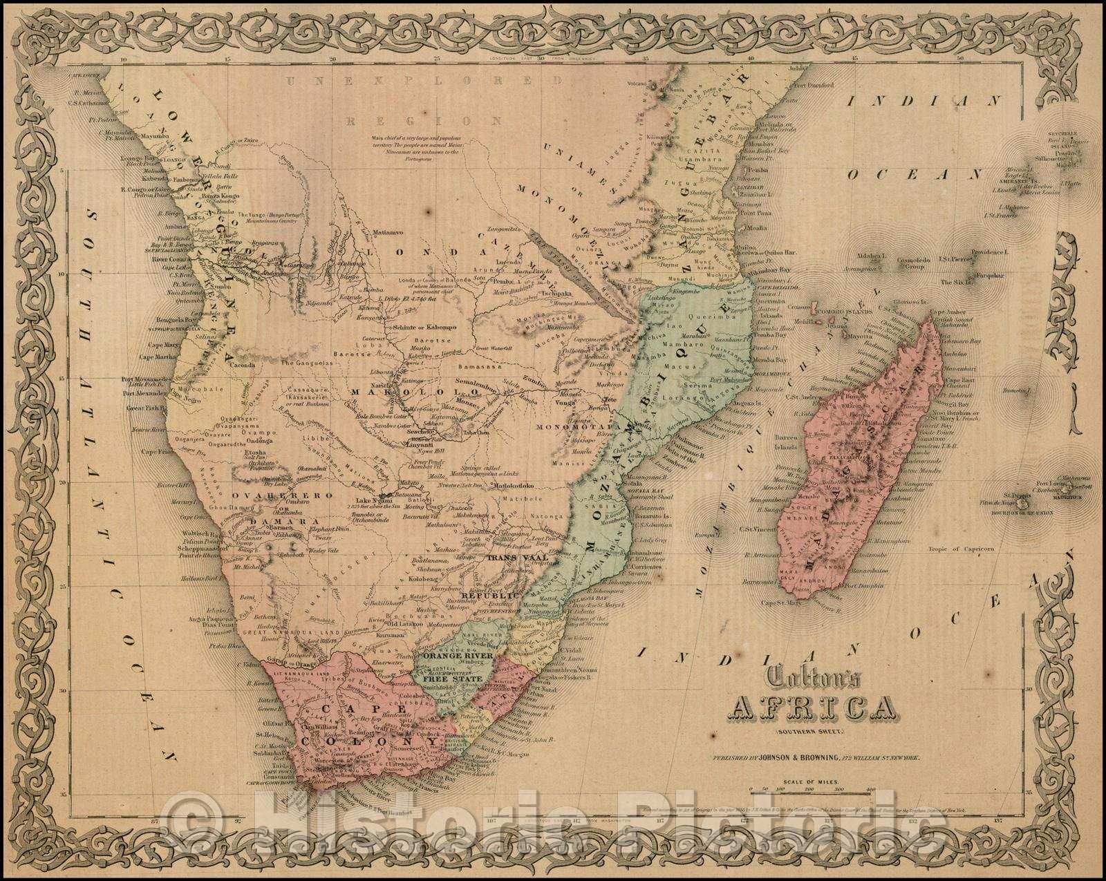• .Historic Map - Africa [Southern Sheet], 1849, Joseph Hutchins Colton - Vintage Wall Art