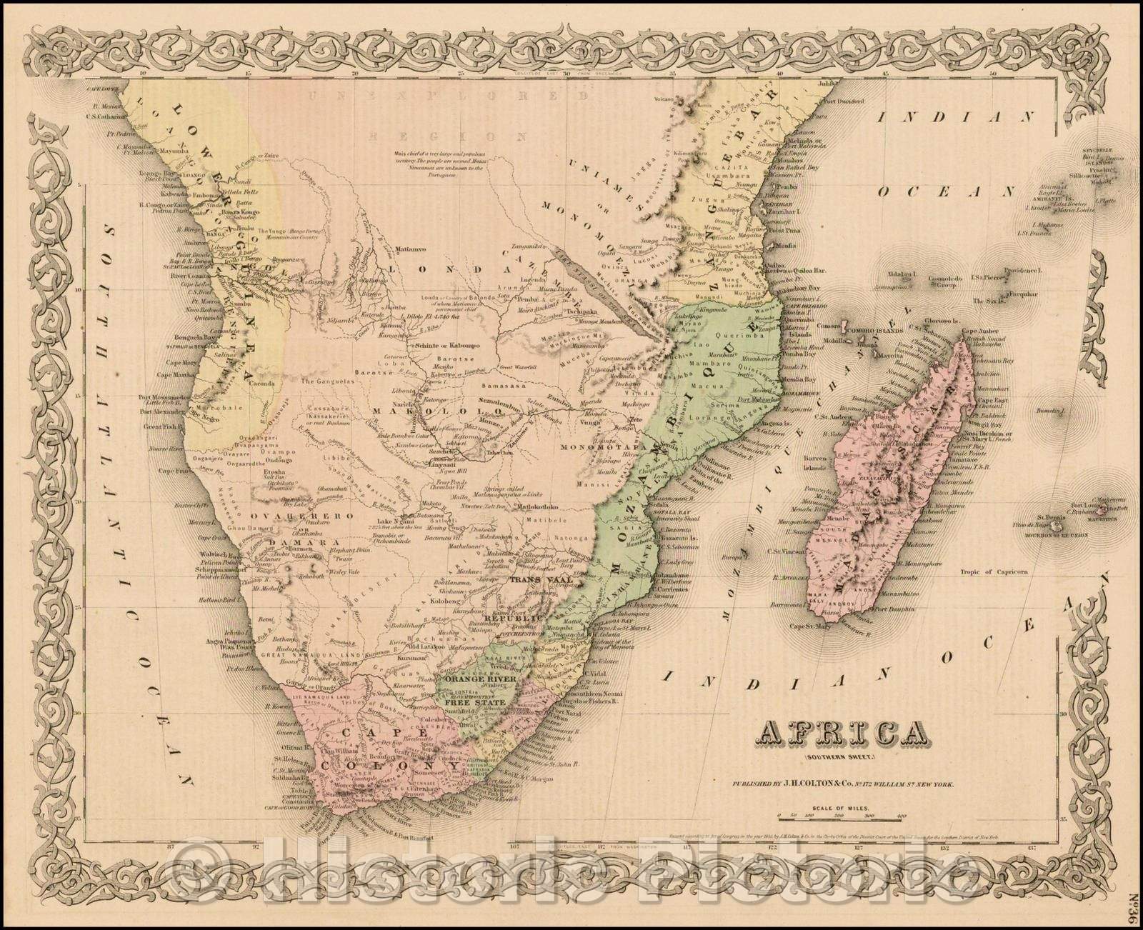 • .Historic Map - Africa [Southern Sheet], 1855, Joseph Hutchins Colton - Vintage Wall Art