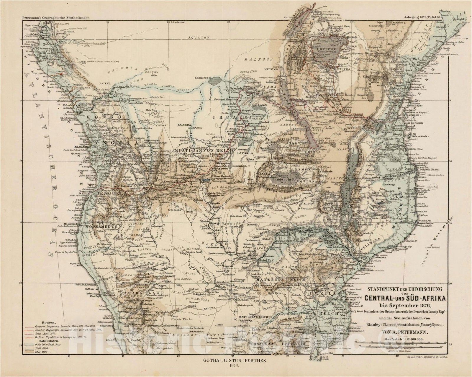 Historic Map : Central and South Africa, showing the German Loango expedition, 1876, Augustus Herman Petermann, Vintage Wall Art