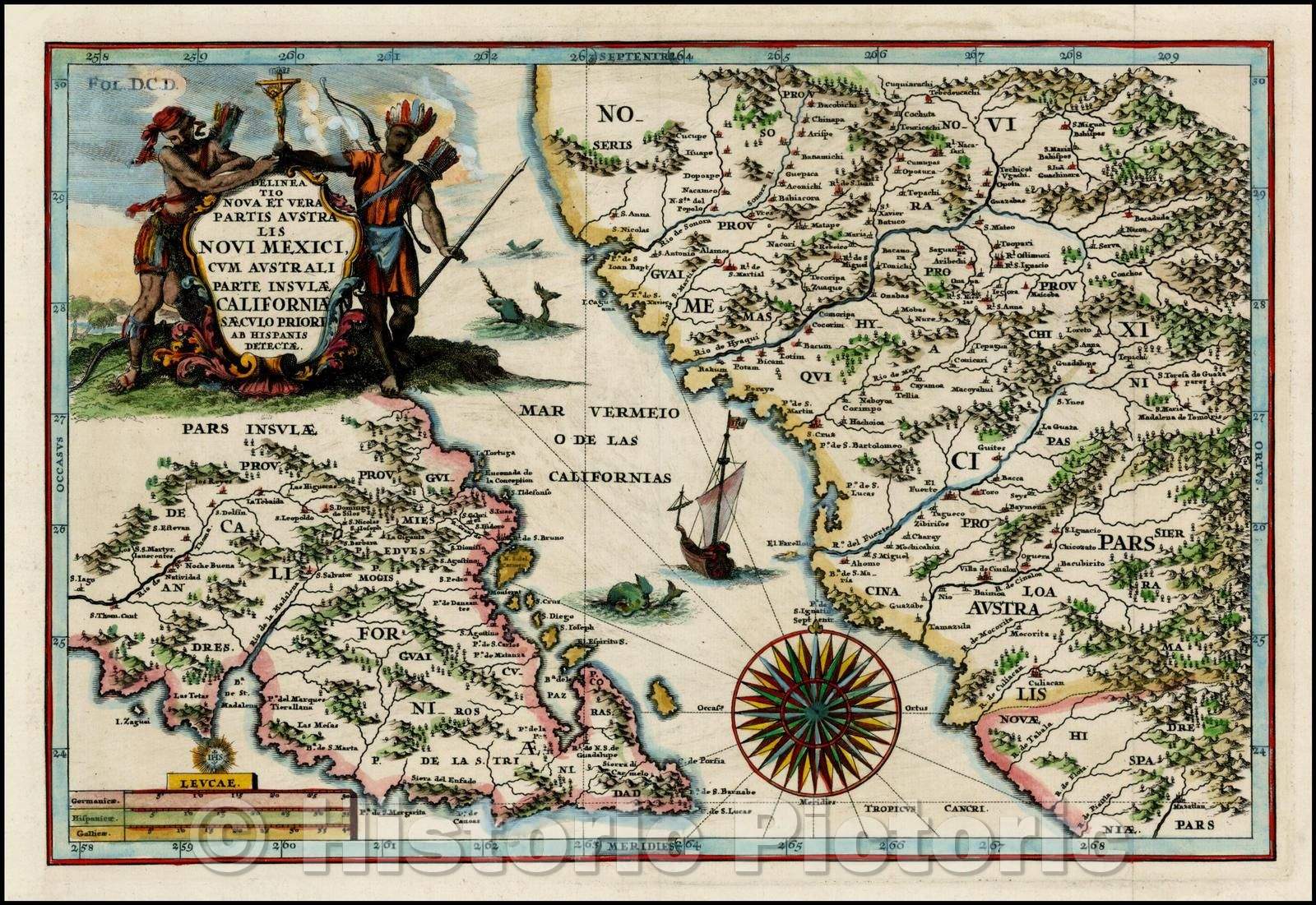 • .Historic Map - Delineatio Nova Et Vera Partis Australis Novi Mexici/New New Mexico, South Africa and Brazil true side, 1703, Heinrich Scherer - Vintage Wall Art