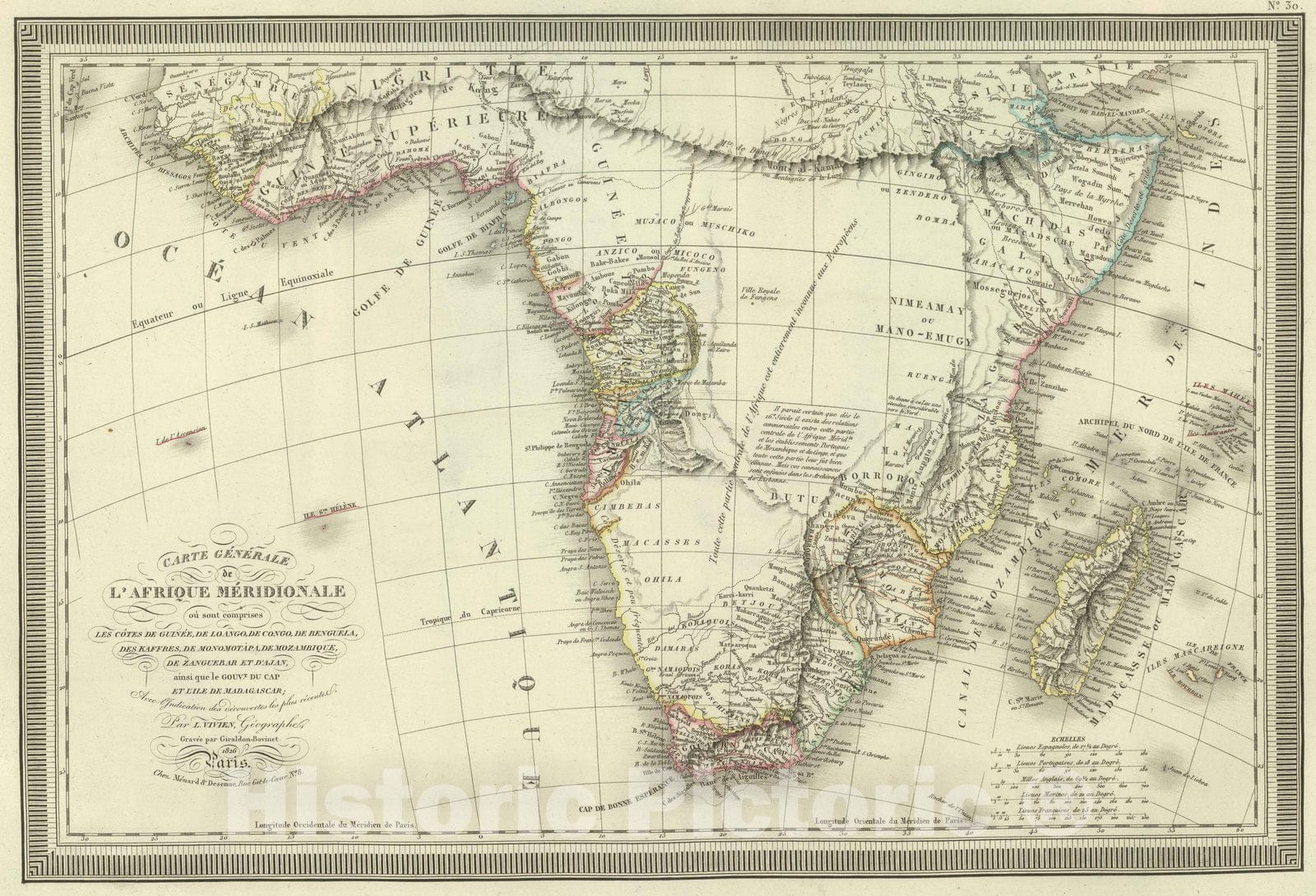 Historic Map : Ivory Coast; South Africa, Central Africa 1826 Carte Generale de L'Afrique Meridionale. , Vintage Wall Art