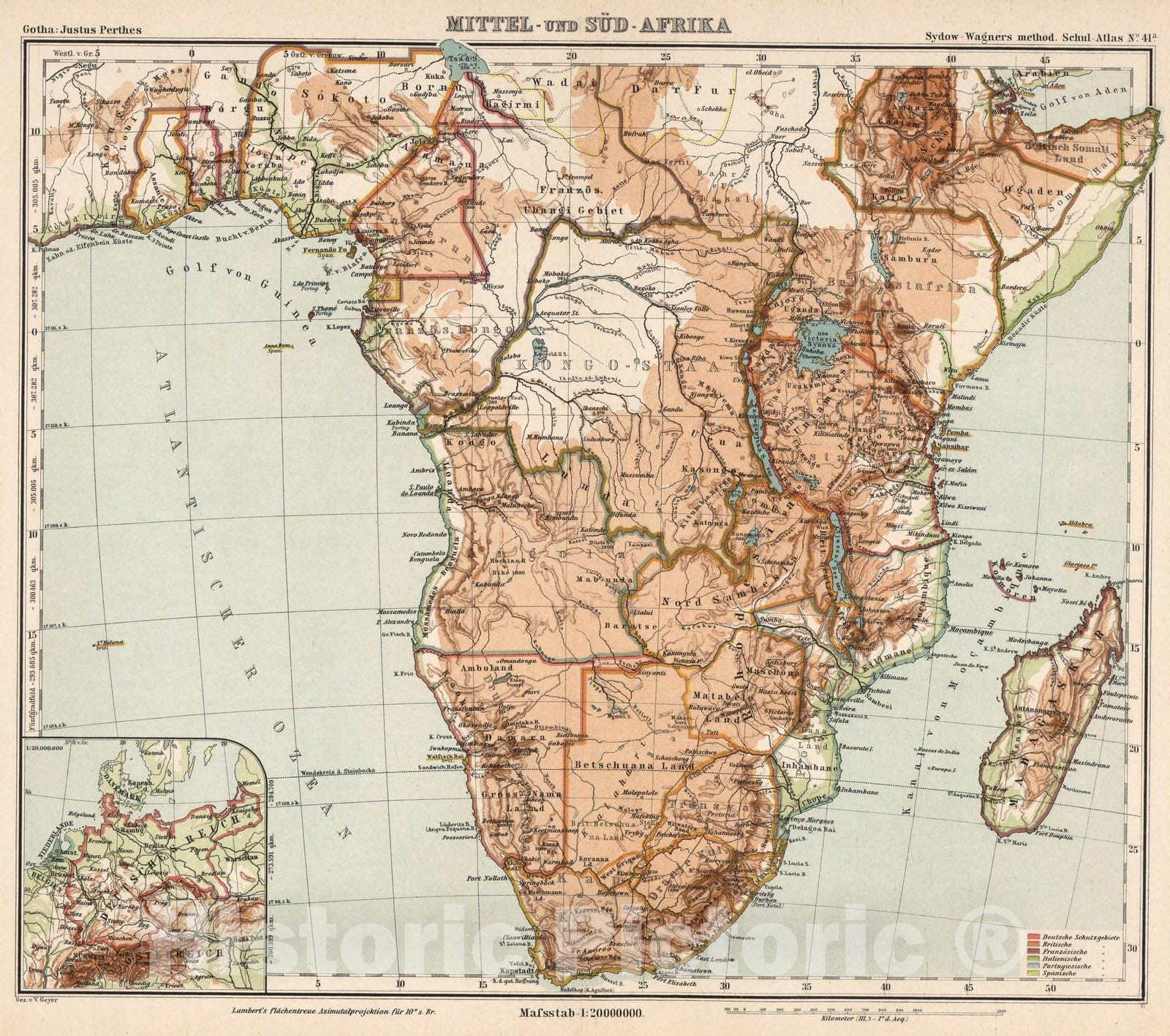 Historic Map : Madagascar, Southern AfricaNo. 41a. Mittel- und Sud-Afrika. 1902 , Vintage Wall Art