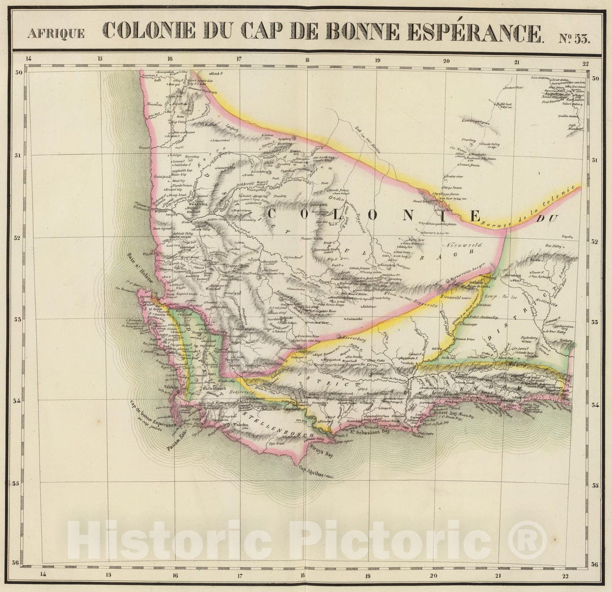 Historic Map : South Africa, 1827 Cap de Bonne Esperance. Afrique 53. , Vintage Wall Art