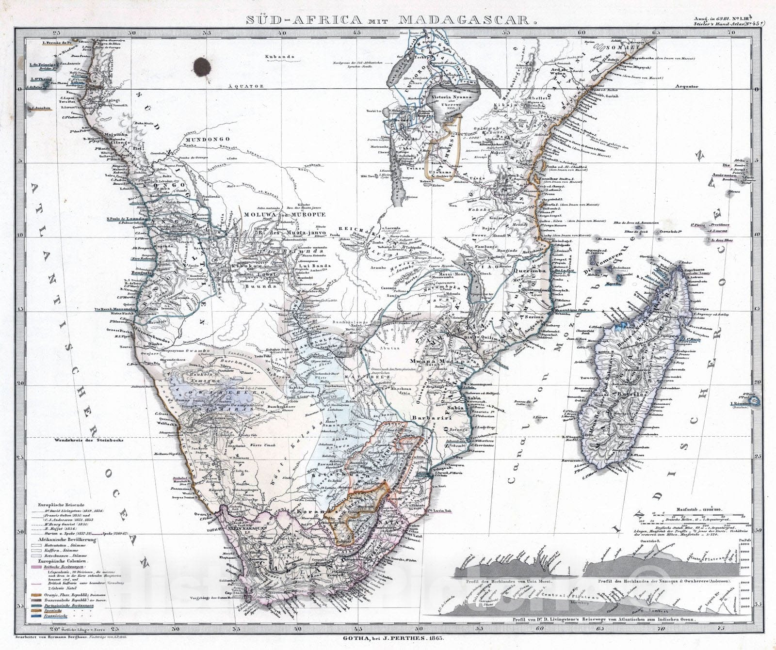 Historic Map : South America; Lesotho; Madagascar, 1863 Sud-Afrika (Southern Africa) mit Madagascar. , Vintage Wall Art