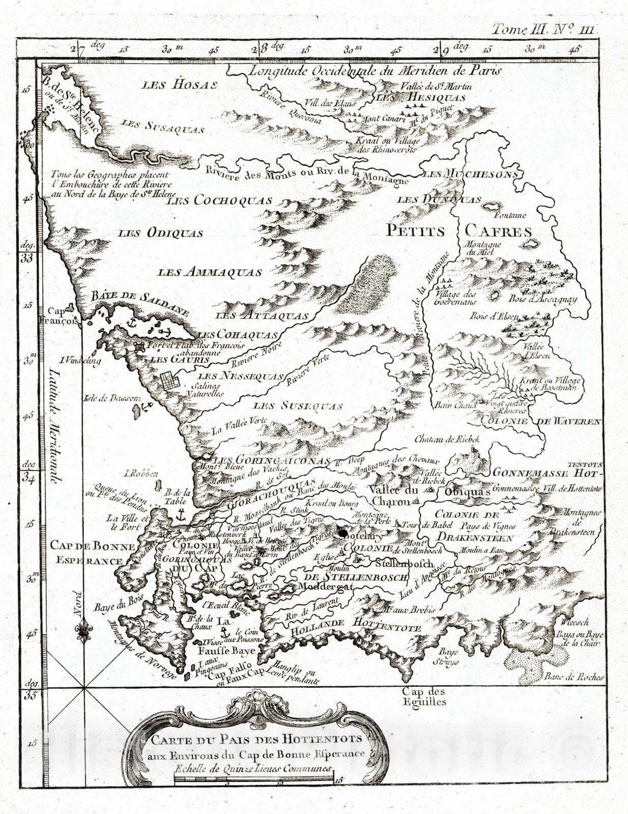 Southern Africa 1764 Carte Du Pais Des Hottentots : aux Environs du Cap de Bonne Esperance , Vintage Wall Art