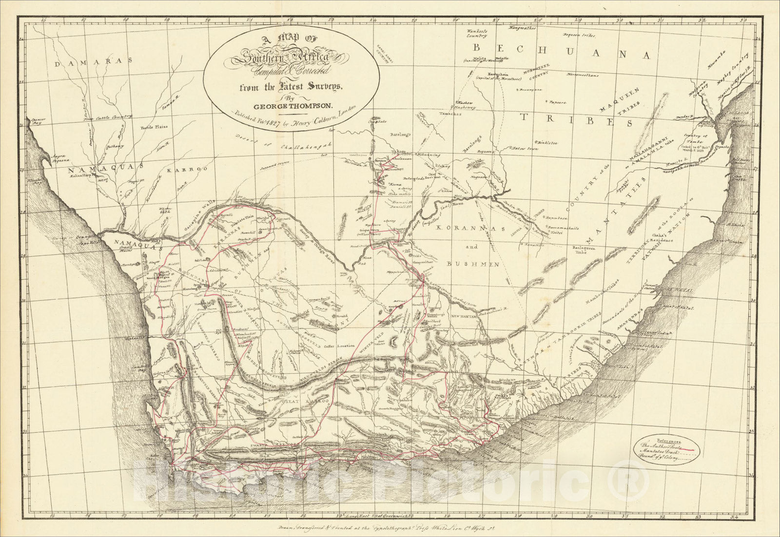 Historic Map : A Map of Southern Africa Compiled & Corrected from the Latest Surveys, By George Thompson, 1827, George Thompson, Vintage Wall Art