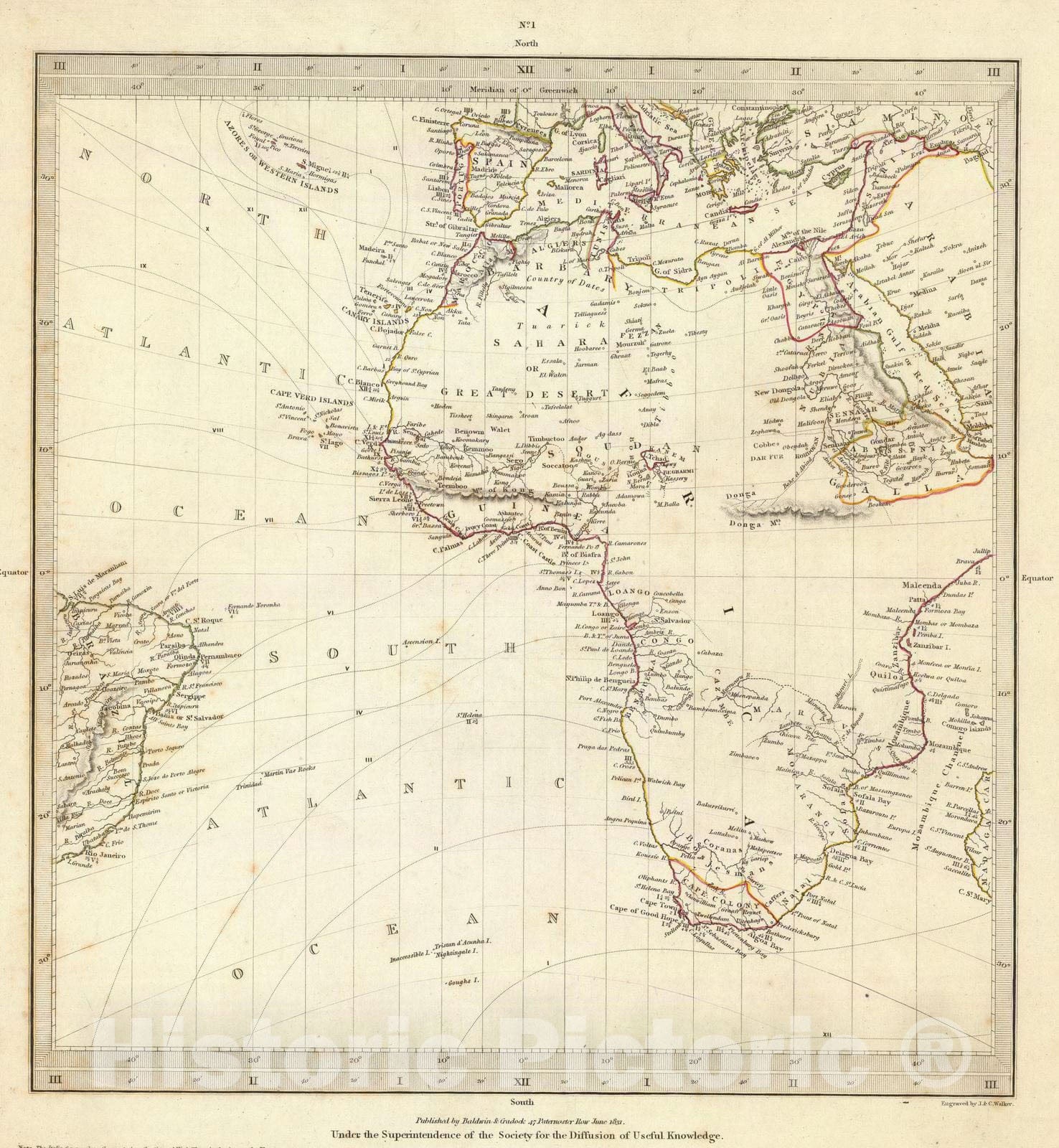 Historic Wall Map : 1831 (World, gnomonic proj. I. Africa and south Europe)