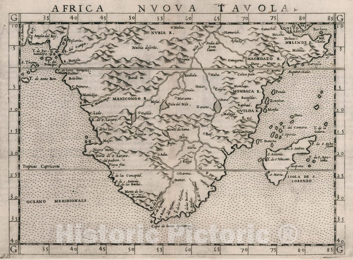 Historic Wall Map : Africa, Southern Africa Nvova tavola. Africa nvova, Ventesimaseconda nvova tavola, 1561 Atlas , Vintage Wall Art