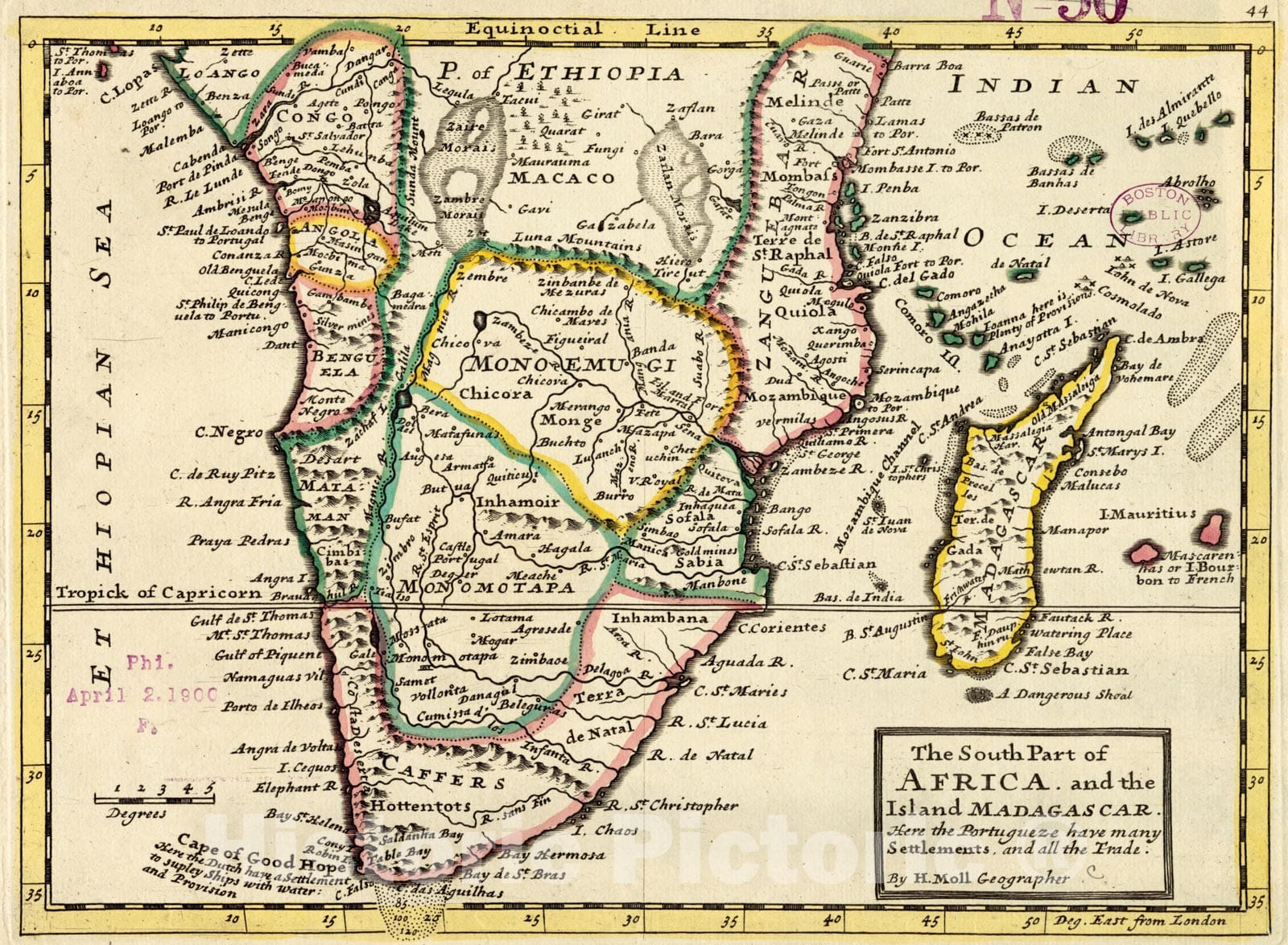 Historical Map, 1732-1736 The south part of Africa, and the island of Madagascar : here the Portugueze have many settlements and all the trade, Vintage Wall Art
