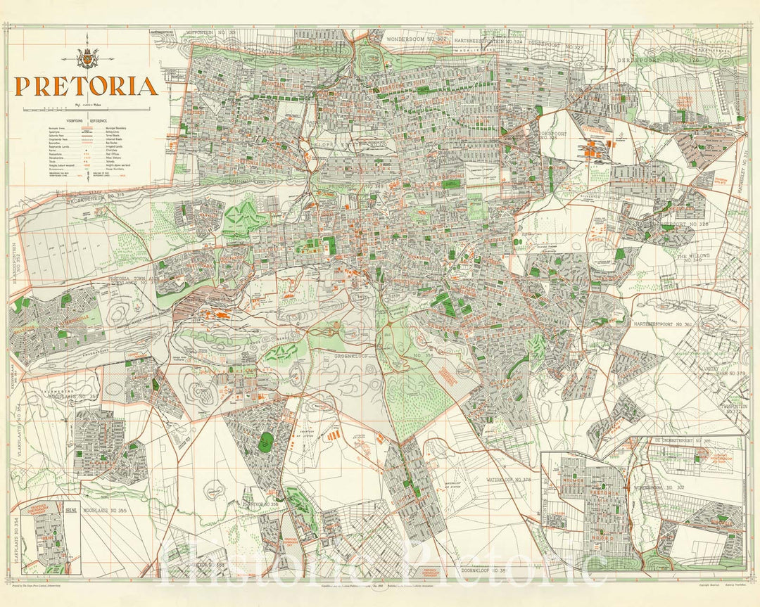 Map : Pretoria, South Africa 1963, Pretoria , Antique Vintage Reproduction