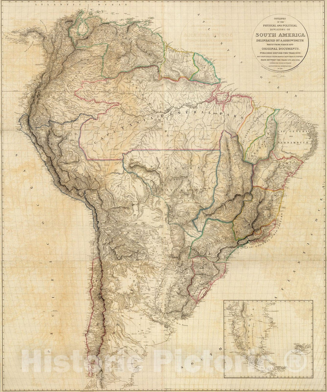 Historic Map : Wall Map, South America 1814 - Vintage Wall Art