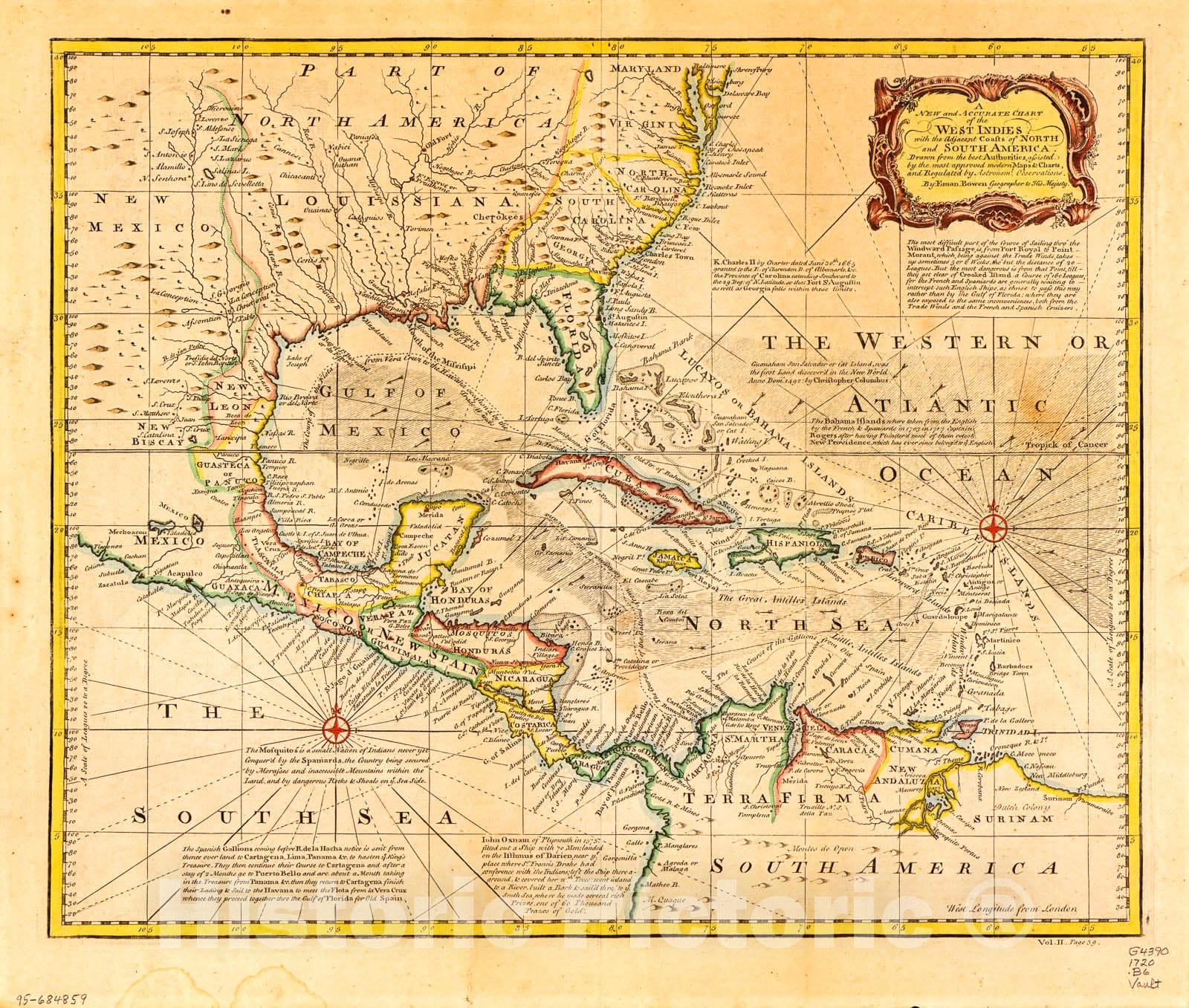 Historic 1720 Map - A New and Accurate Chart of The West Indies with The Adjacent coasts of North and South America