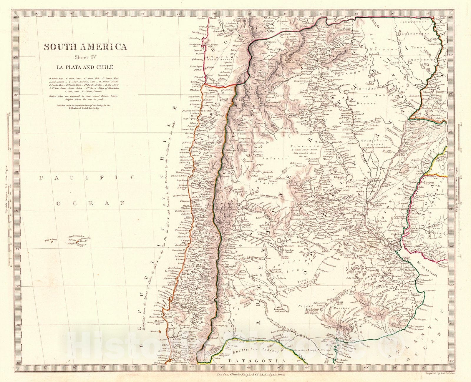 Vintage Map | 1846 South America Sheet IV, La Plata and Chilé | Society for the Diffusion of Useful Knowledge