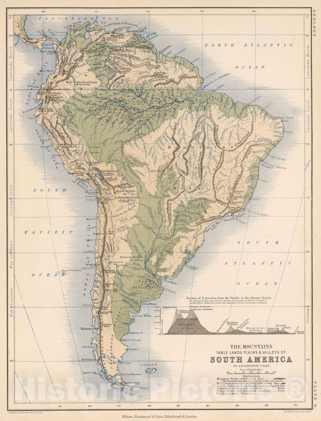 Historic Map : 1852 Mountains, Table Lands, Plains & Valleys of South America - Vintage Wall Art
