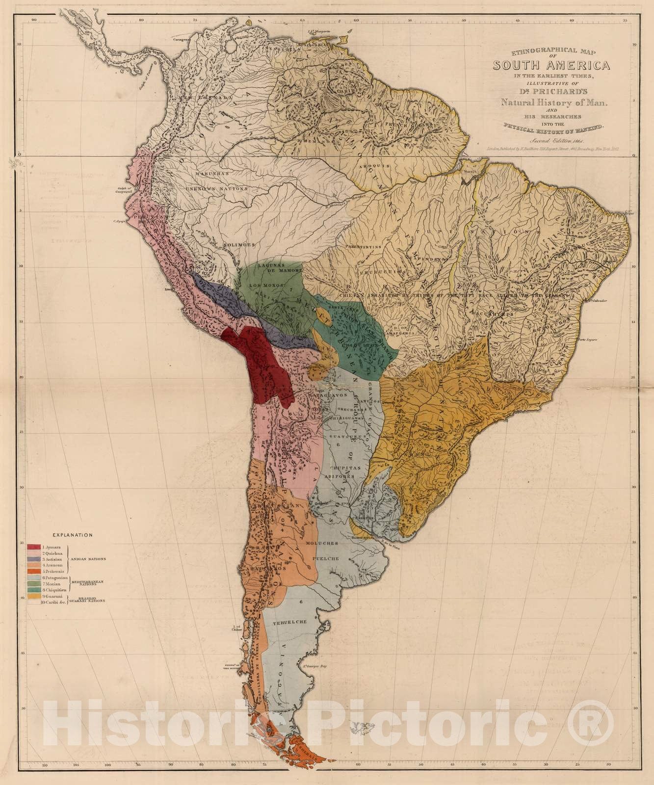 Historic Map : 1861 Ethnographical Map of South America, in The Earliest Times. - Vintage Wall Art