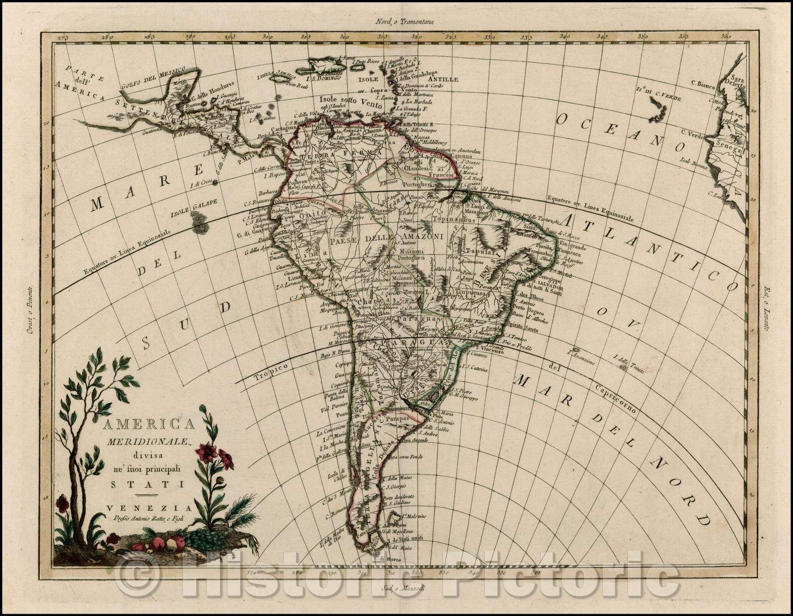 Historic Map - America Meridionale divisa ne suoi principali Stati/Map of South America. title cartouche, 1785, Antonio Zatta - Vintage Wall Art
