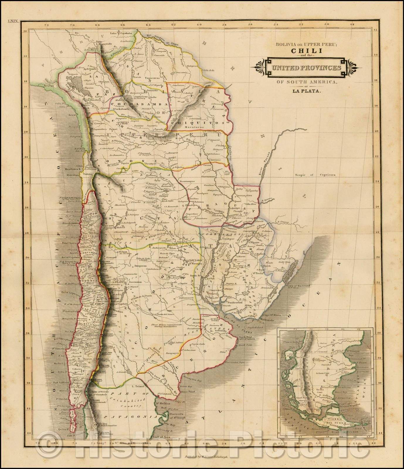 Historic Map - Bolivia or Upper Peru; Chili and the United Provinces of South America, or La Plata, 1844, David Lizars - Vintage Wall Art