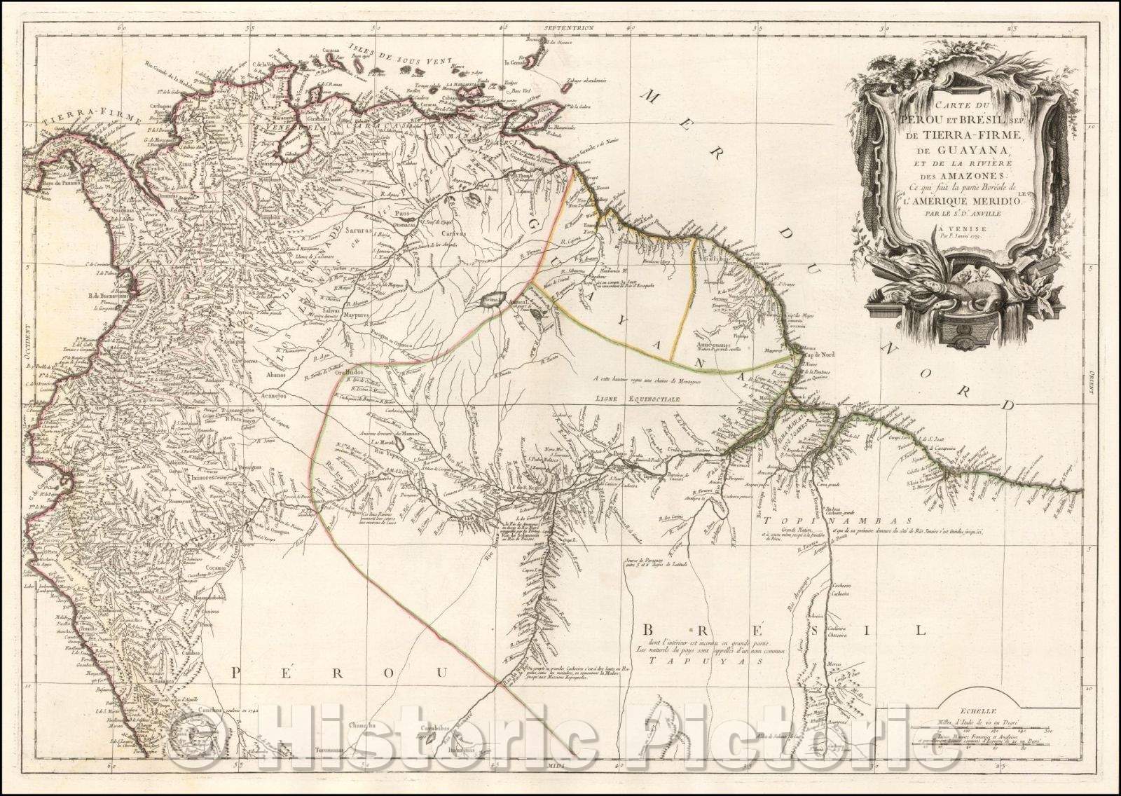 Historic Map - Carte du Perou et Brasil Sepl, de Tierre-Firme, de Guyana, et de la Riviei :: South America, Peru and Brasil, 1779 - Vintage Wall Art