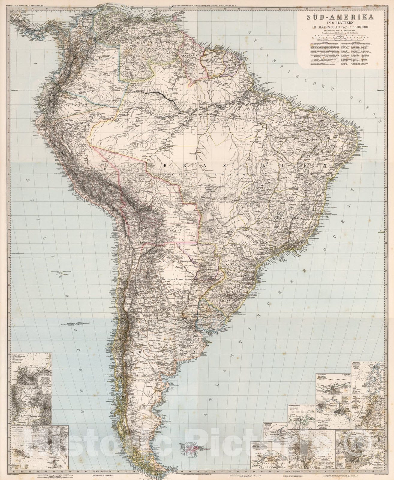 Historic Map : Composite: Sud-Amerika in six Blattern, (South America)., 1881, Vintage Wall Art