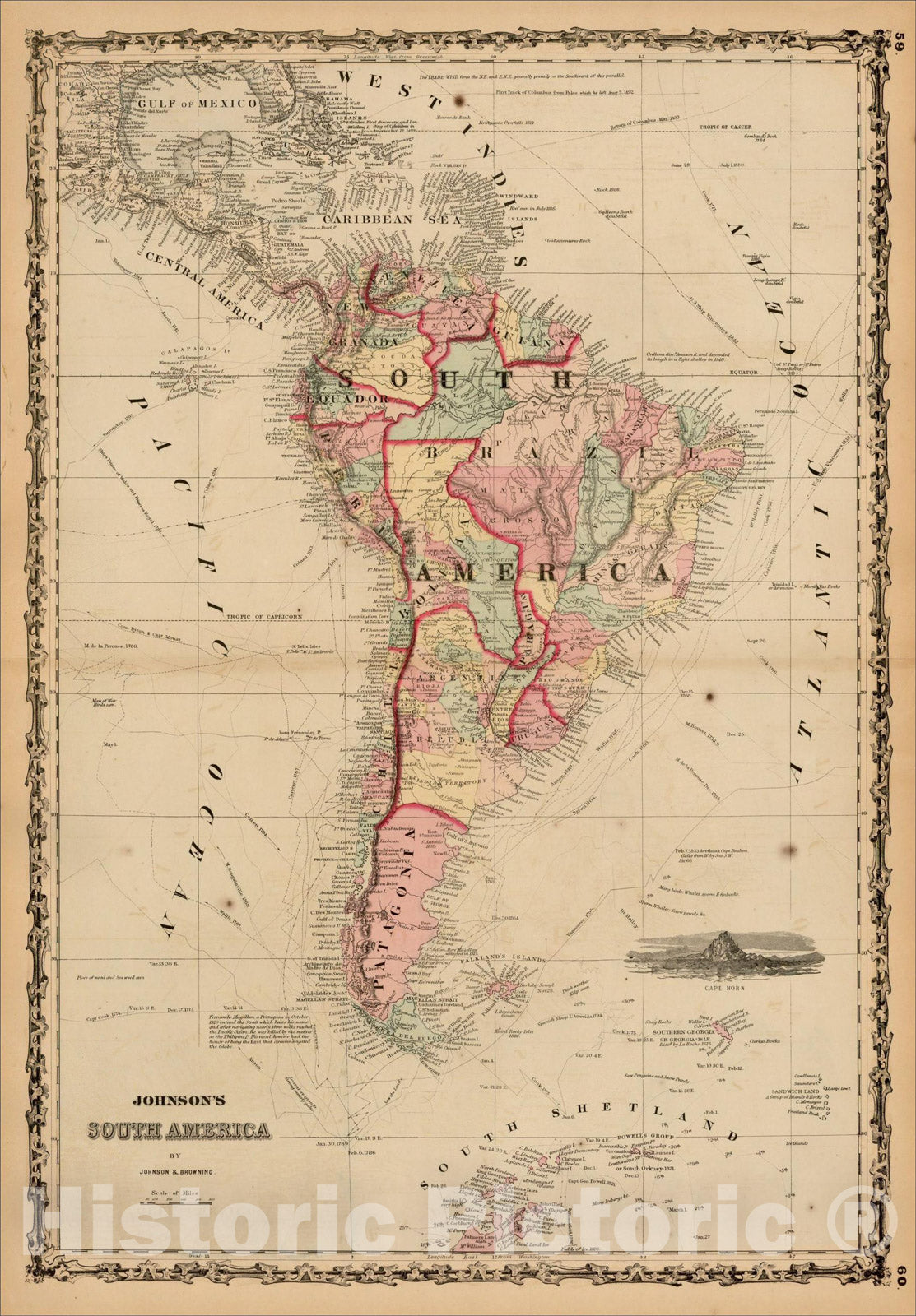 Historic Map : Johnson's South America, 1862, Alvin Jewett Johnson, v2, Vintage Wall Art