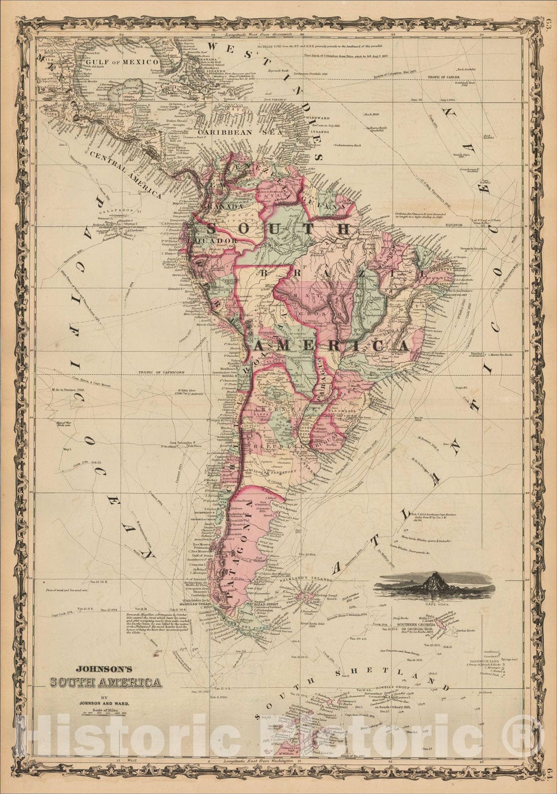 • .Historic Map : Johnson's South America, 1862, Alvin Jewett Johnson, v1, Vintage Wall Art