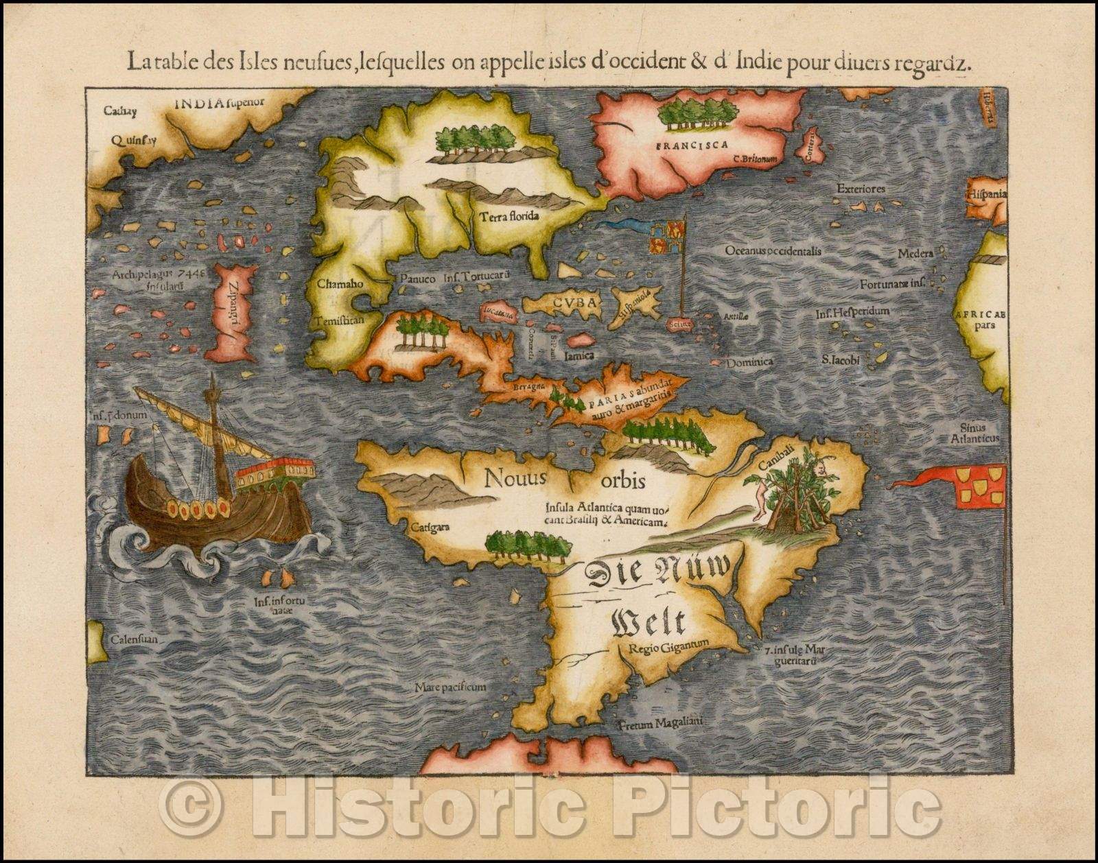 Historic Map - La Table des Isles neusues, lesquelles on appelle isles d'occident / 1552 edition of Munster's Map of America, North and South America, 1552 v1
