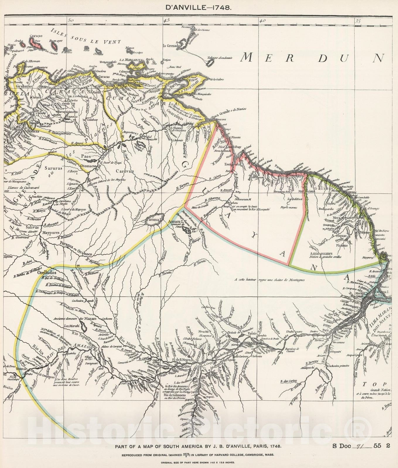 Historic Map : National Atlas - 1748 Part of South America by D'Anville. - Vintage Wall Art