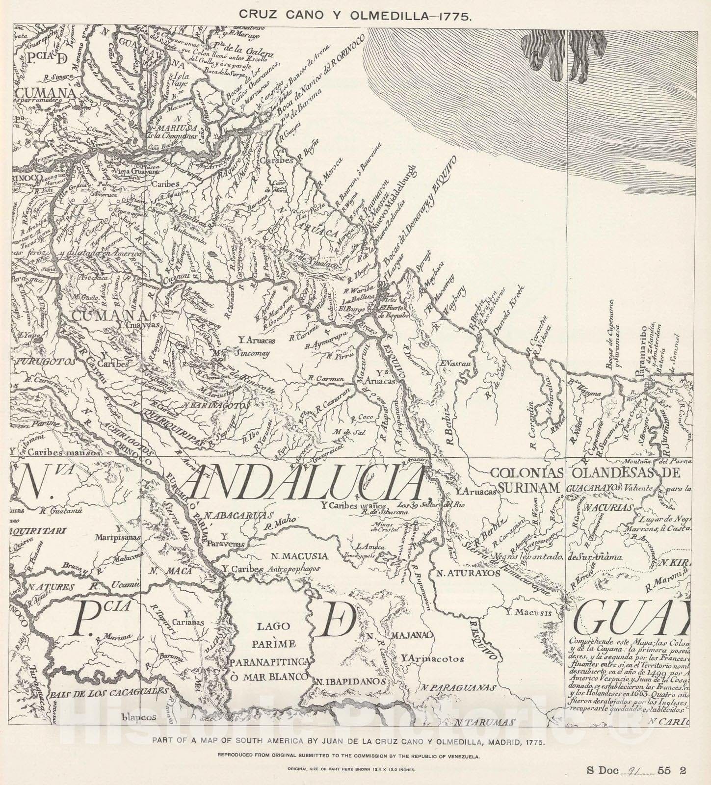 Historic Map : National Atlas - 1775 Part of South America by Cruz Cano Y Olmedilla. - Vintage Wall Art