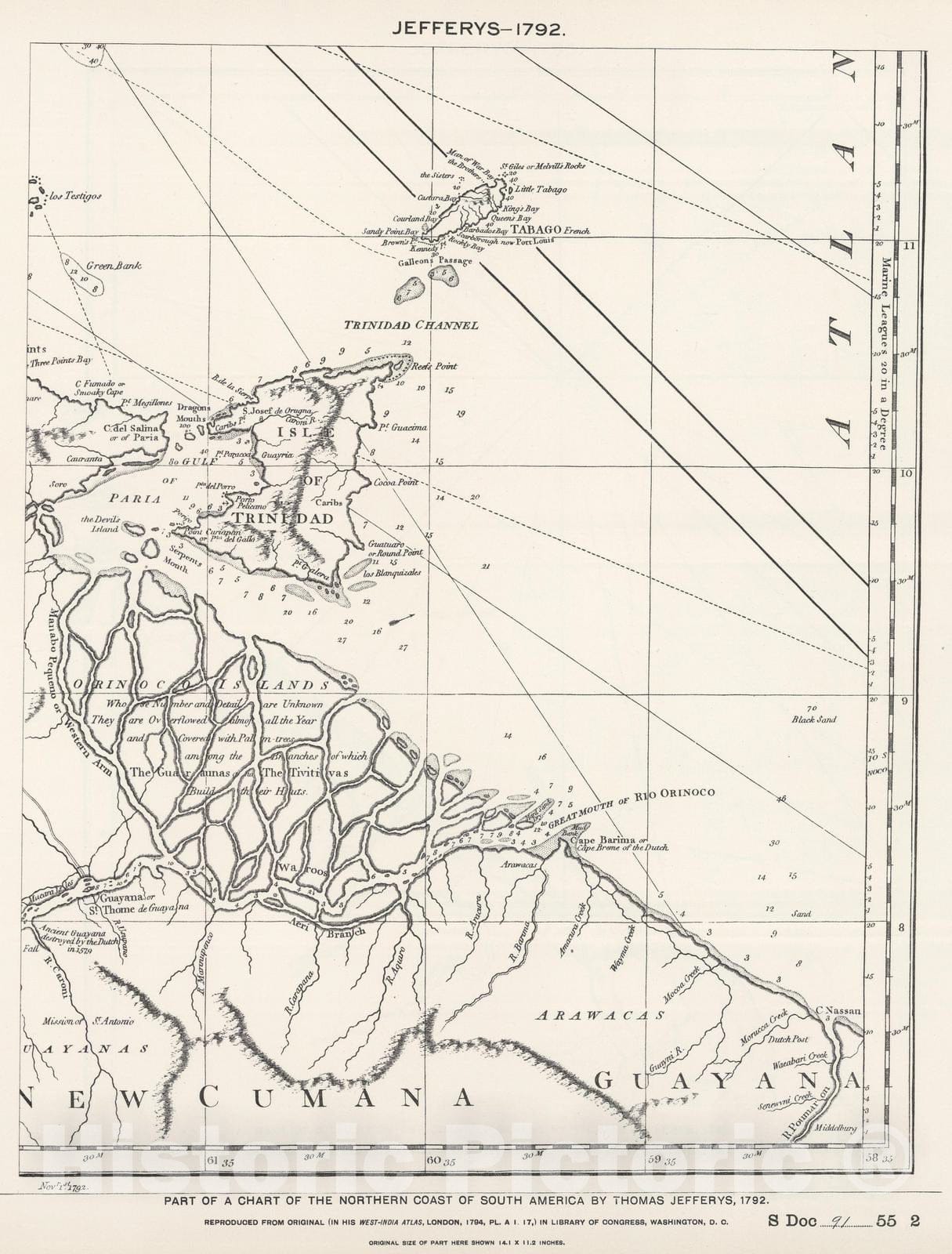 Historic Map : National Atlas - 1792 Part of Northern Coast of South America by Jefferys. - Vintage Wall Art