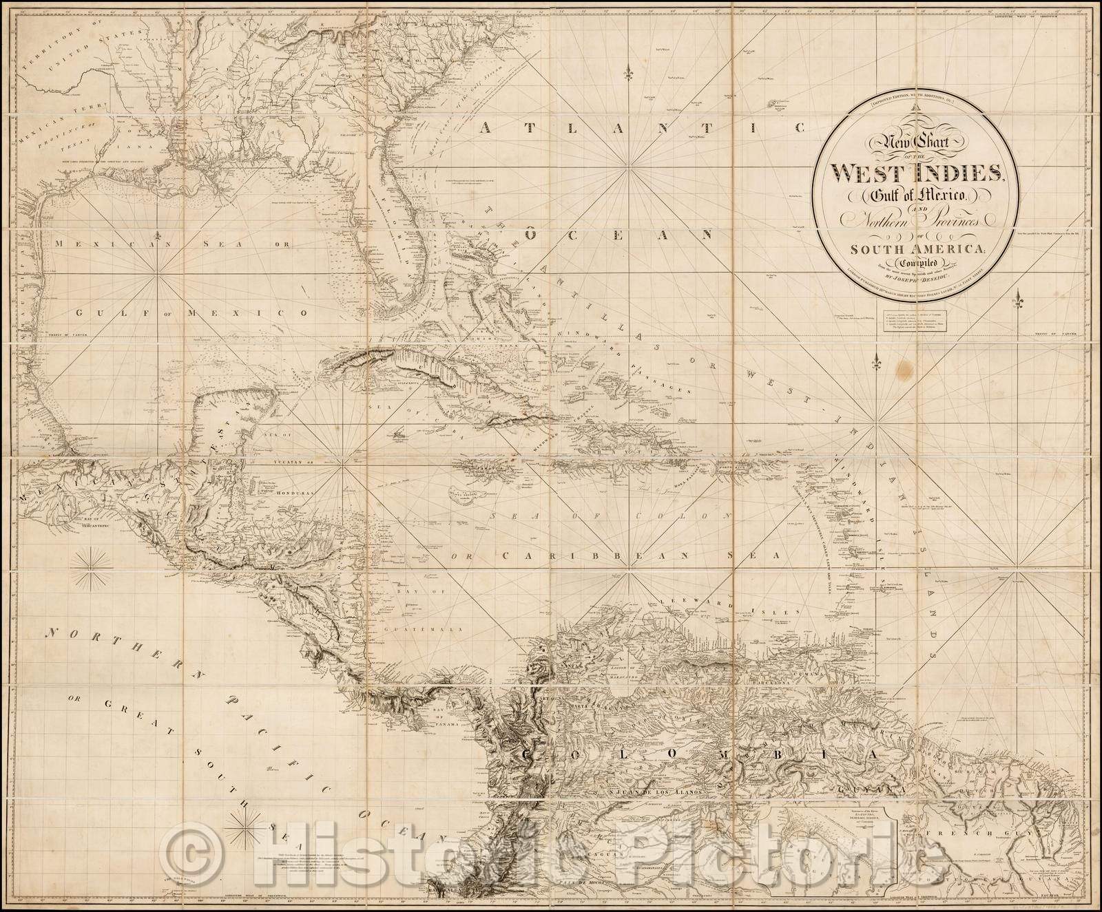Historic Map - A New Chart of the West Indies, Gulf of Mexico, and Northern Provinces of South America, 1828, Richard Holmes Laurie - Vintage Wall Art