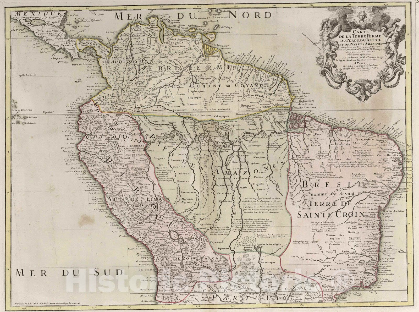 Peru, , South America 1703 Carte de la Terre Ferme, du Perou, du Bresil et du Pays des Amazones