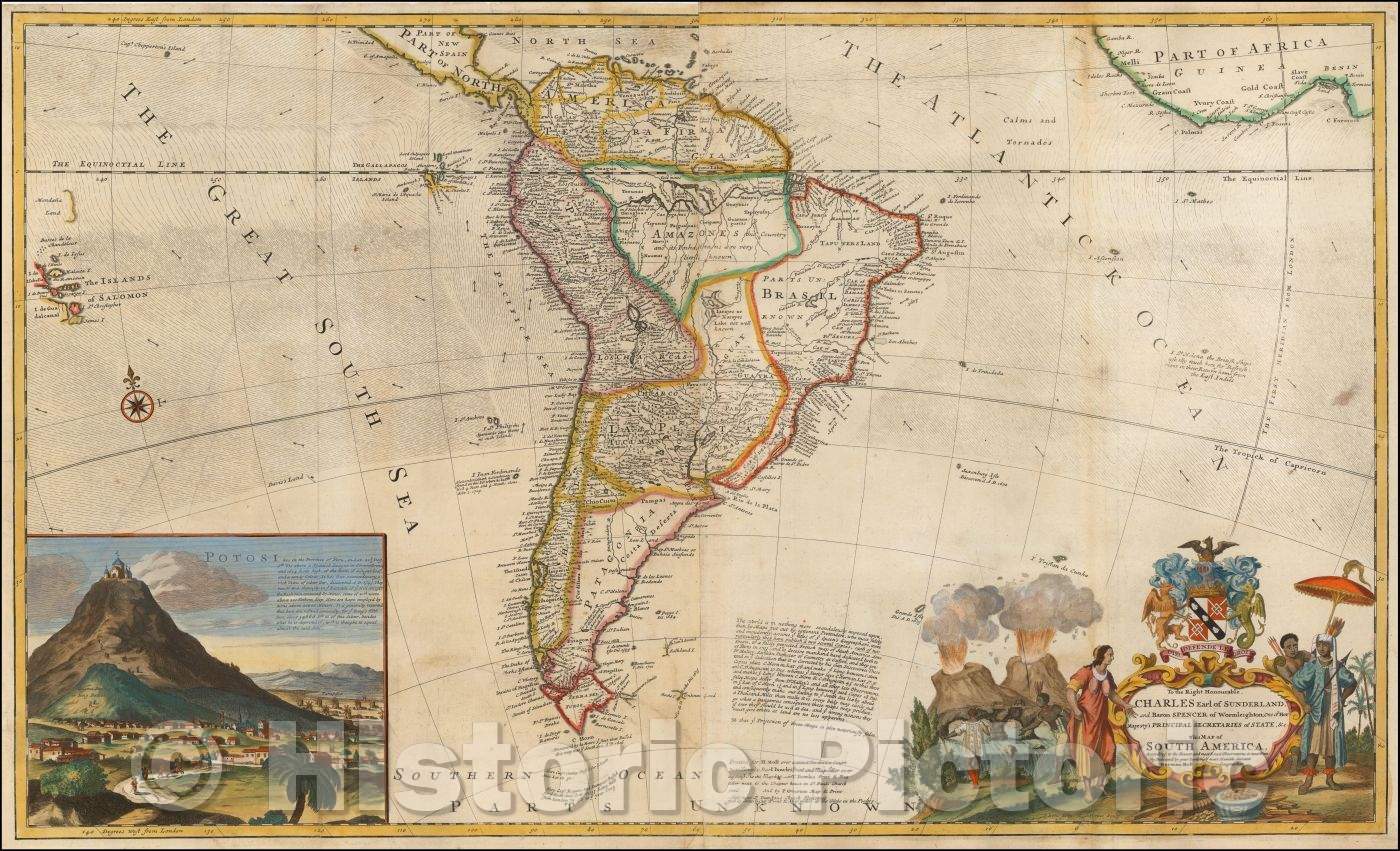 Historic Map - Map of South America, According to the Newest and Most Exact Observations, 1730, Herman Moll v4
