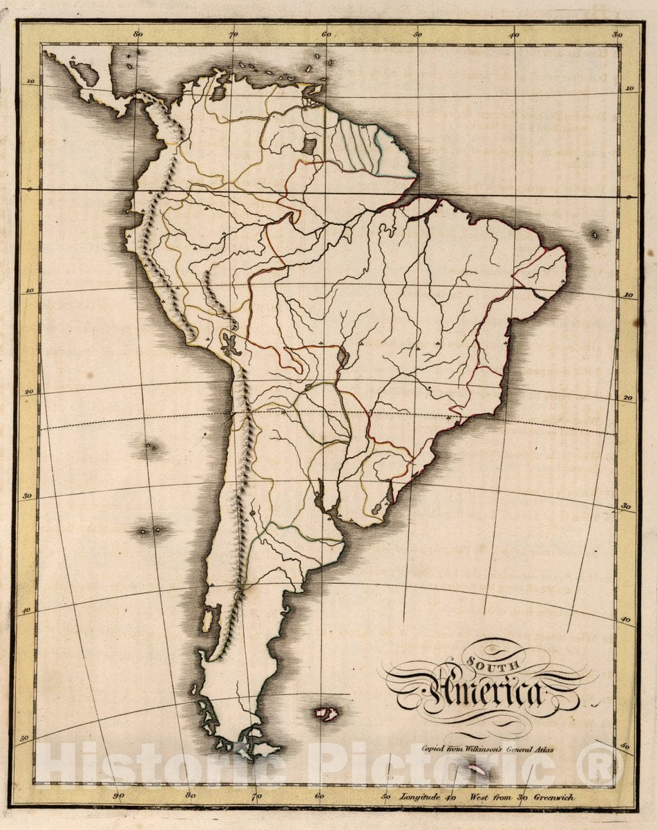 Historic Map : South America. Copied from Wilkinson's General Atlas. Practical Geography; in A Series of Exercises, 1815 Atlas - Vintage Wall Art