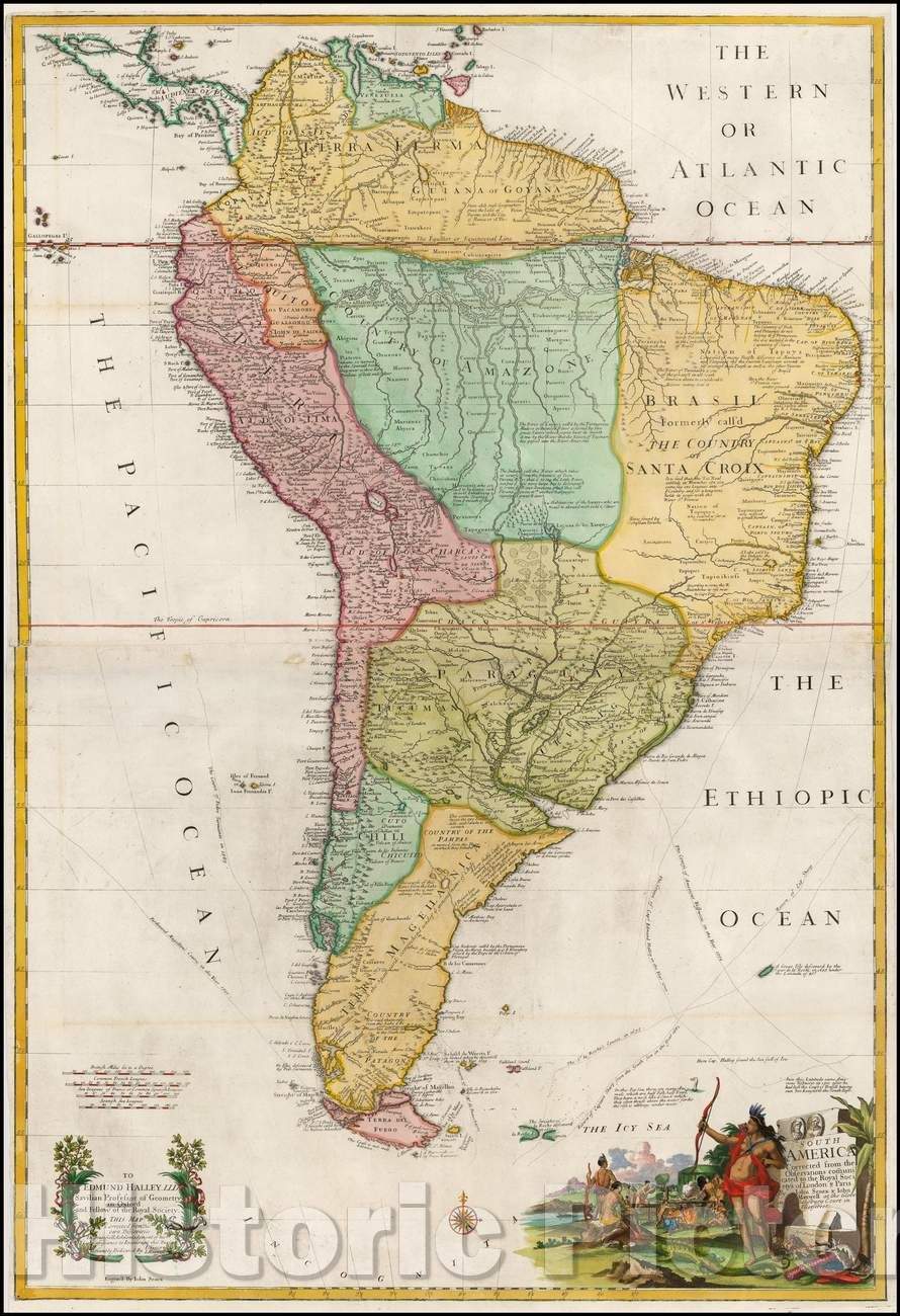 Historic Map - South America corrected from the Observations communicated to the Royal Society's of London & Paris, 1710, John Senex - Vintage Wall Art