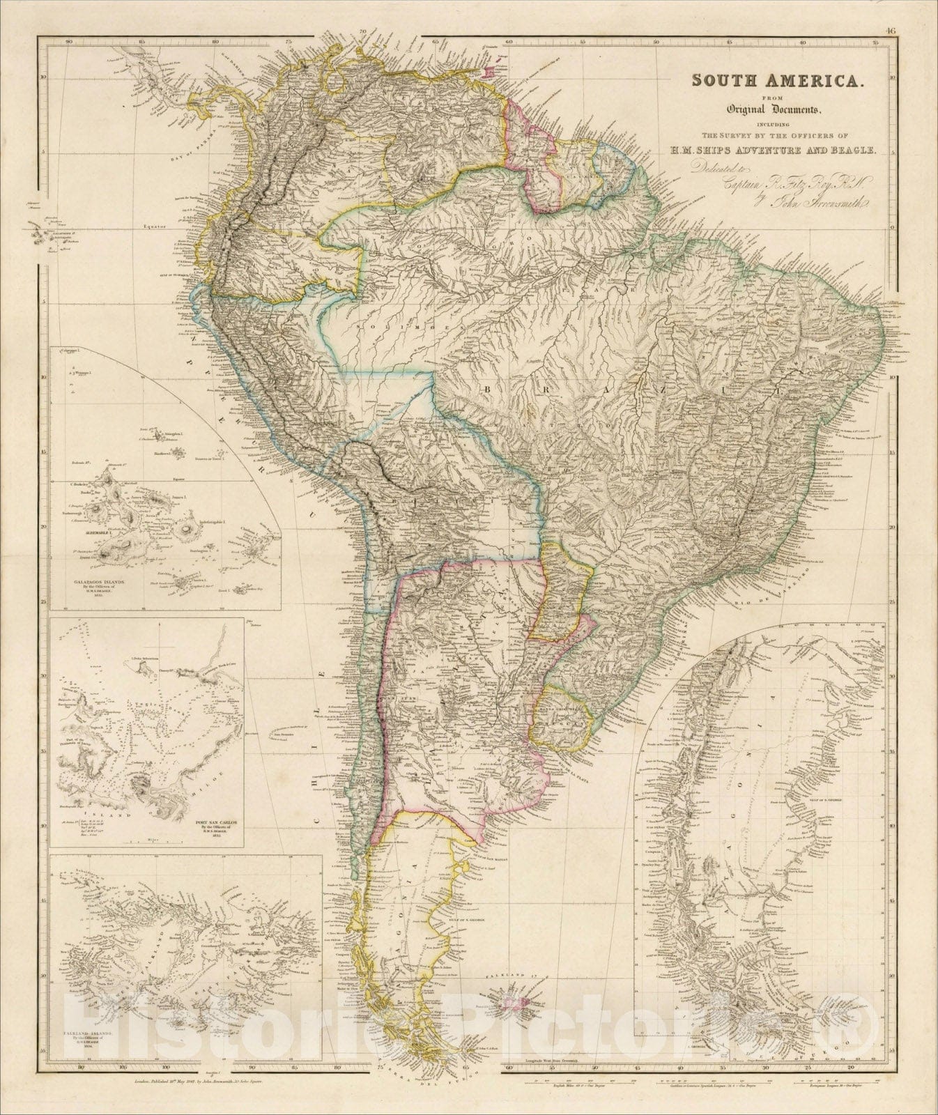 Historic Map : South America From Original Documents, c1842, John Arrowsmith, Vintage Wall Art