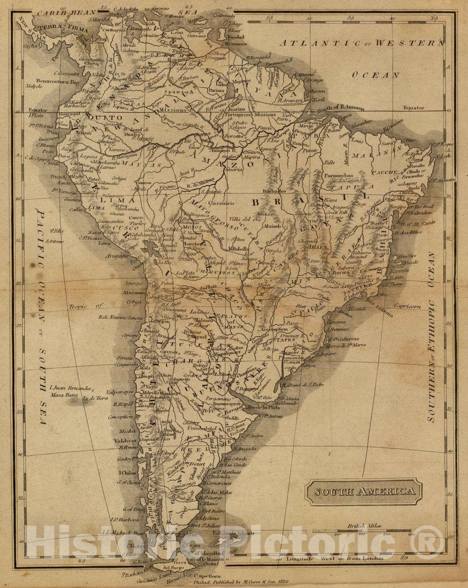 Historic Map : South America. Philad, Published by M. Carey & Son, 1820. (1825), 1825 Atlas - Vintage Wall Art